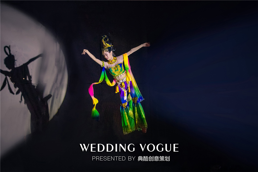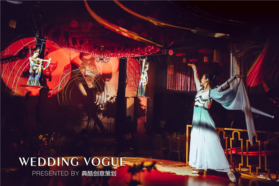 而为了突出本次汉式婚礼的华贵之感,并呼应送嫁区的两个朱雀,典酷在仪式流程上加入了飞天女的人物设定。
