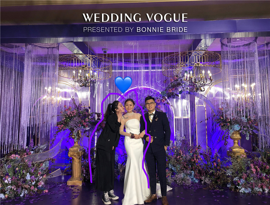 在服务这对新人的过程中,新娘与设计师非常投缘,两人在短暂的交流之后迅速成为了很好的朋友,设计师还被邀请为伴娘参加当日的婚礼。她说:“我在保证婚礼现场效果完美呈现的同时,也陪伴新娘走过了人生中最重要的阶段,这对我而言是一段非常难忘的经历!”