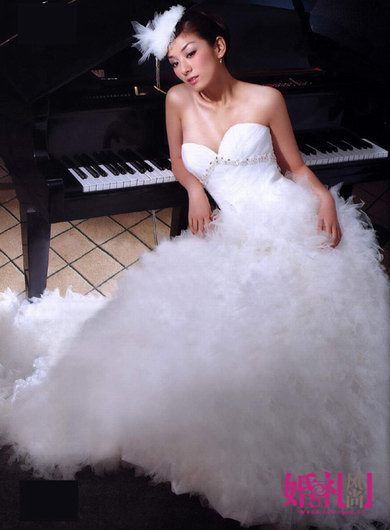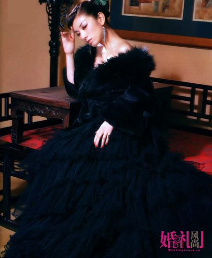 黄奕曾经拍摄的一组经典婚纱写真,穿着3套白纱及红、黑色礼服出镜,尽显娇俏。