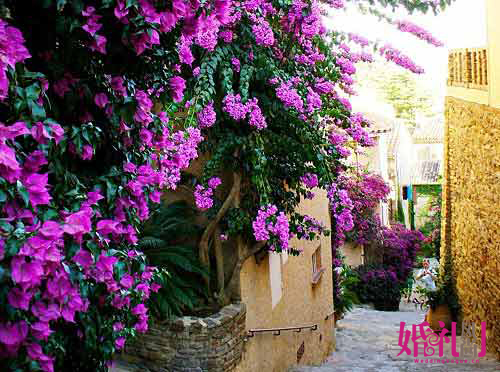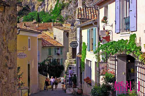 石铺的小路曲折幽静,一些僻静处的小巷,伸直手臂,便可触到两边的砖墙。古典优雅的街头建筑,处处哥特式风味,墙上爬藤在秋天转为红色,风中招展着。街边小店透出薰衣草的清香,特产的佳酿玫瑰红葡萄酒,足可配得上夜光杯。市场上各种新鲜奶酪的味道或让人食指大动,或不禁要掩鼻皱眉避之则吉。人们在此饮酒、看书、或是发呆,人骑马缓步经过,典型的法国南部悠闲的生活。
