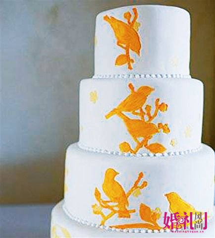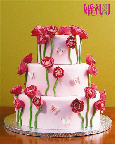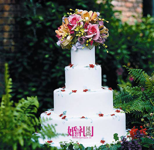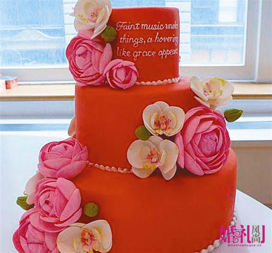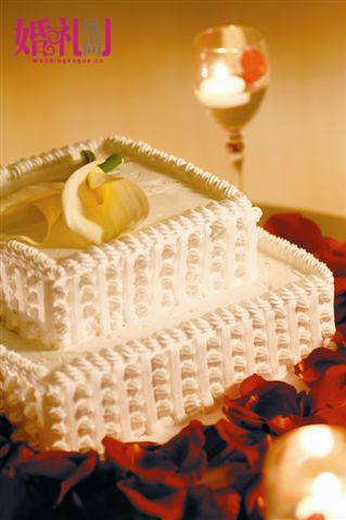 3。婚礼环境 定制蛋糕特别考虑到当天婚礼的环境,如果是户外婚礼且温度较高,注意尽量避免使用生奶油,蛋糖霜以及奶油冰淇淋为原料,而应和西点师及时沟通,以植物油制的起酥油代替纯奶油加到糖衣上,增加蛋糕的抗热能力,或选择用软糖料制作的蛋糕,这类蛋糕甚至不需要冷冻保存。