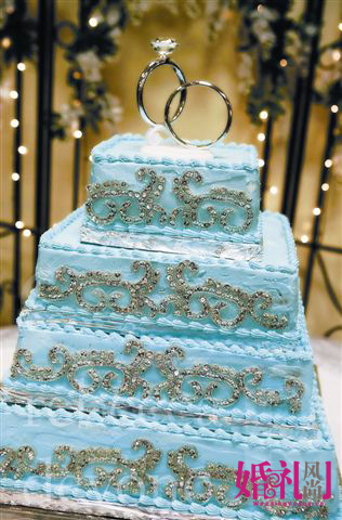 4。在蛋糕内放置定情婚戒,增加切蛋糕的神秘感。