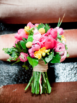 用果实来搭配鲜花,是时下的趋势。果实有生机勃勃的色彩和不同的造型,跳跃的红和绿,自然下垂的枝条, 让手捧花多了一份创意,也多了一份大自然地亲切感。