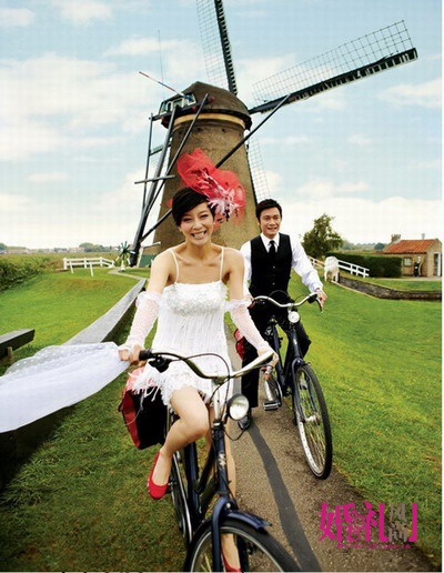 在这组时尚、优雅又不是个性的照片中,两人时而深情相拥、时而含情脉脉,甚至如孩童般骑上脚踏车奔跑,脸上时刻洋溢的幸福和甜蜜无不羡煞旁人,加上极具特色的荷兰风情,古典又不失时尚的欧式建筑,让整组照片充斥着浪漫、唯美和爱的味道。2009年12月12日,这对新人将在北京举行他们的婚礼,届时会有很多亲朋好友到场祝贺,来共同分享他们的幸福和甜蜜,而这对新人更是非常开心能在众多亲友的祝福声中走上红毯,走向幸福美好的明天。