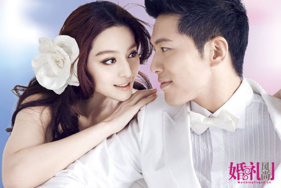 范冰冰和黄少祺,纯美纯白婚纱,经典唯美。