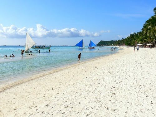 所谓长滩岛,最出名的就是它绵长的白色沙滩。其中“白滩”(white beach)长4公里,是岛上面积最大的海滩, 也是游人小贩最多的地方,因此酒店饭馆也多聚集在这里。另一个主要的沙滩是布拉伯滩(Bulabog Beach),与白滩相对,在海岛的另一边,那里的酒店饭馆多为新建的,海滩面积稍比白滩狭窄。长滩岛之所以迷人,不仅仅因为它的热带风情 ,还由于岛上的白沙非常绵细,实属罕见,许多游客都将其形容为“面粉沙”,更有人说它“柔软得就像是女人的头发”。
