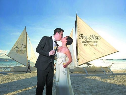 近日,“情歌天后”梁静茹和老公赵元同(Tony)在浪漫的菲律宾长滩岛上举行了婚礼。长滩岛沙滩素有“全世界最浪漫的白沙滩”美名,海边椰林摇曳,很多美女披着一袭轻纱徜徉于椰树间, 蓝天、碧海、清风、白沙……远离尘嚣的天堂近在咫尺。这个浪漫的地方,满满的都是爱。