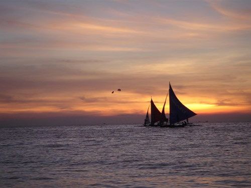长滩岛的帆船与众不同,被称作“螃蟹船”。整艘船以修长的船体为主轴,前后长了两对伸出海面的“翅膀”,看上去就是一个上下穿了头的“工”字,样子十分奇特。其实所谓的“翅膀”,就是4张用粗麻绳在木杆上缠结而成的牢固大网,主要供人乘坐,船身则做摆放食物和水以及随身物品之用。乘坐这样的帆船,一路鼓风前进,仿佛是一只在海上翱翔的大鸟。