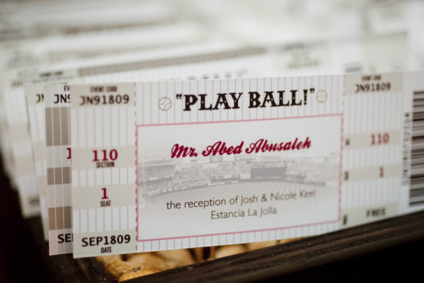 将每位来宾的名卡设计成棒球赛球票的样子,很棒的创意!