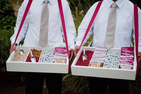 婚礼还提供了自助糖果的服务,同样是粉色和巧克力色的组合