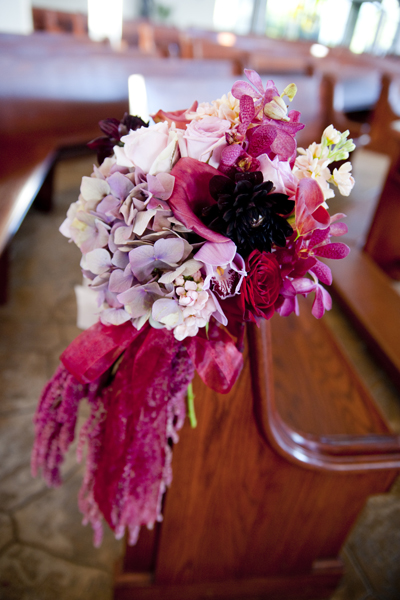 由多种花制成的多彩椅背花,充满了青春的活力。