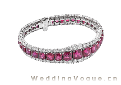 格拉夫祖母绿方形切割红宝石配圆形钻石递阶式手镯(红宝石共重:29.22克拉, 钻石共重: 7.62克拉)