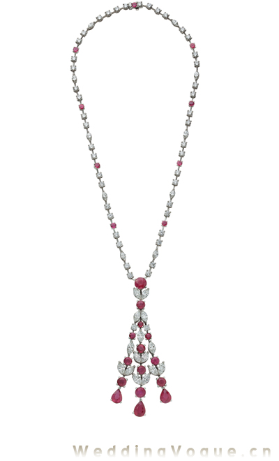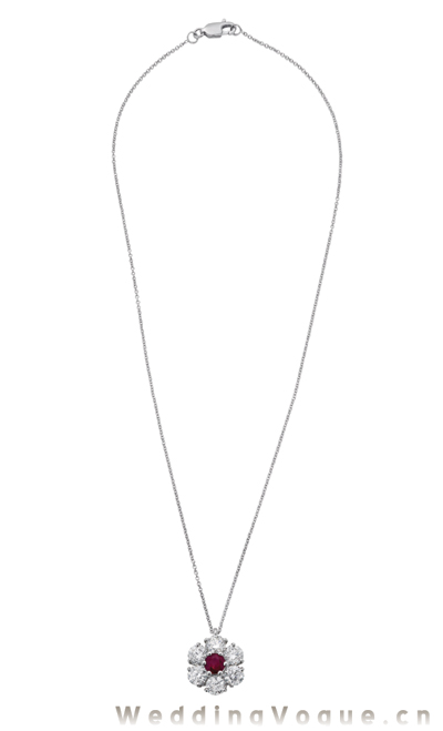 格拉夫“花卉系列”(Graff Flower Collection)红宝石白钻吊坠配铂金项链