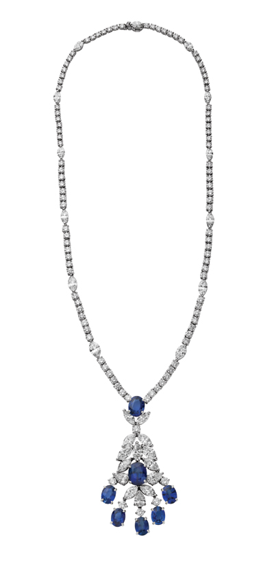 格拉夫“蝴蝶系列” (Graff Butterfly Collection)蓝宝石白钻项链配梨形蓝宝石吊坠