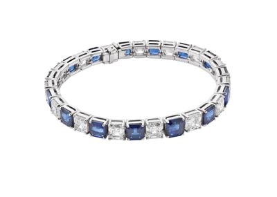 格拉夫祖母绿切割钻石配蓝宝石手镯 (蓝宝石共重: 19.46克拉, 钻石共重: 15.24克拉)