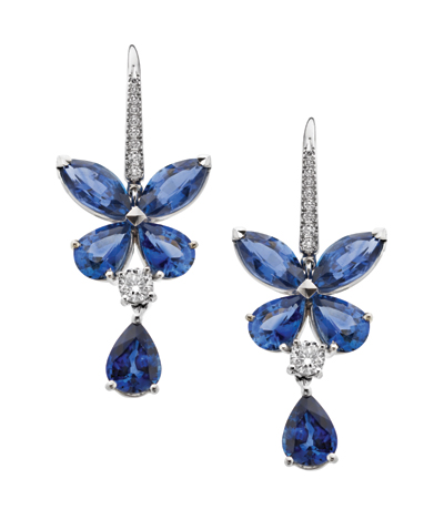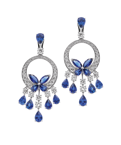 格拉夫“蝴蝶系列” (Graff Butterfly Collection)蓝宝石白钻耳环配梨形蓝宝石吊坠