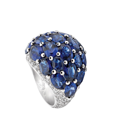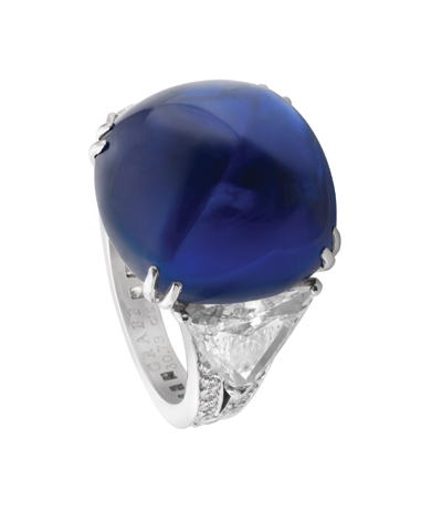 格拉夫蓝宝石圆顶形戒指,戒托镶嵌白色钻石 (蓝宝石共重: 21.1克拉)