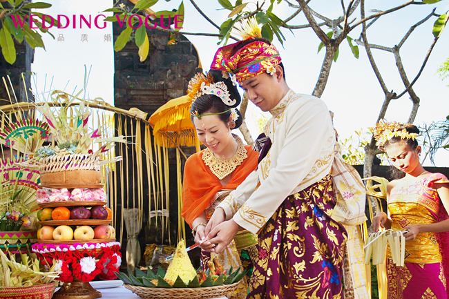作为一位职业婚礼策划师,体验不同地域的婚俗是芸芸的一大愿望。所以一场当地的证婚仪式成为芸芸和高楠的必然选择,在和芸芸沟通的时候,芸芸兴致勃勃的和我讲述巴厘岛当地证婚仪式的种种习俗。进而我们的话题又转到国内婚礼中的话题,希望国内婚礼多注重内容和意义少点形式主义.我们开玩笑说,这叫职业病......
