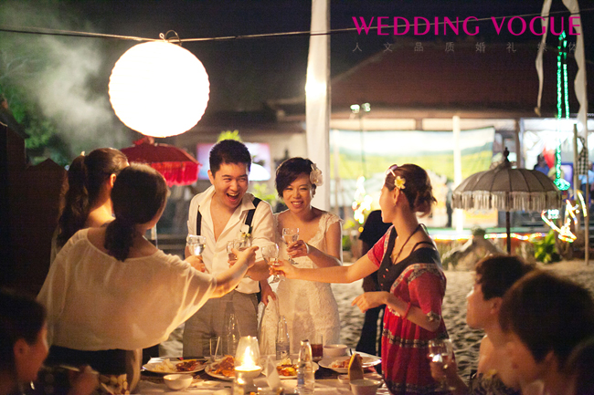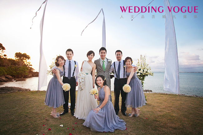 和芸芸聊到婚礼当天最大的感受和体会时,芸芸告诉我们。当时选择到巴厘岛旅行结婚,就是希望到一个风景如画的地方渡假结婚。婚礼当天真的很放松,参加婚礼的都是自己很好的朋友们和亲人,人数也比较小规模,很私密。而且并不仅仅是婚礼,更像是一个有着婚礼意义的假期."仪式前我和伴娘们在做spa,而仪式后我们和伴郎伴娘一行人一起去潜水......"芸芸这样告诉我们。