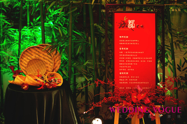红绣球带来了“红茶赋”的主题婚礼。现场用了很多竹子装饰,一步入就仿佛置身竹林之中,十分清新;现场还有很多成都本地元素,盖碗茶、特色小吃等,仿佛让人置身川蜀,流连忘返!清新,自然,原生,本地,这场特别的婚礼让人印象深刻。