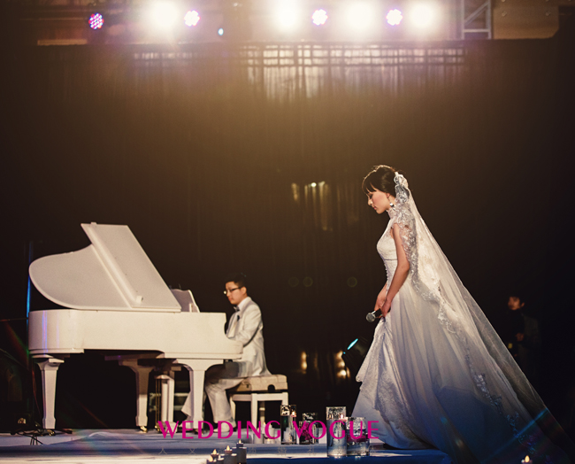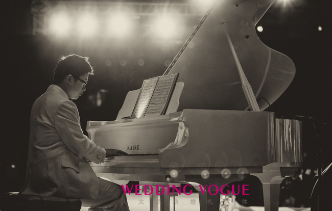 伴着新郎悠扬的钢琴演奏,身着白纱的新娘唱起英文版的《爱与诗之歌》。“请对我再说一次爱你,说了一遍,请再对我说一遍... ....”,他们用音乐交流,诉说对爱情的敬意,并用誓言表达对爱情的坚贞。行云流水的画面,庄重高雅的氛围,将来宾带入唯美而诗意的情境之中... ...这是一次与音乐同行,与诗歌同行,与艺术同行的婚礼秀。