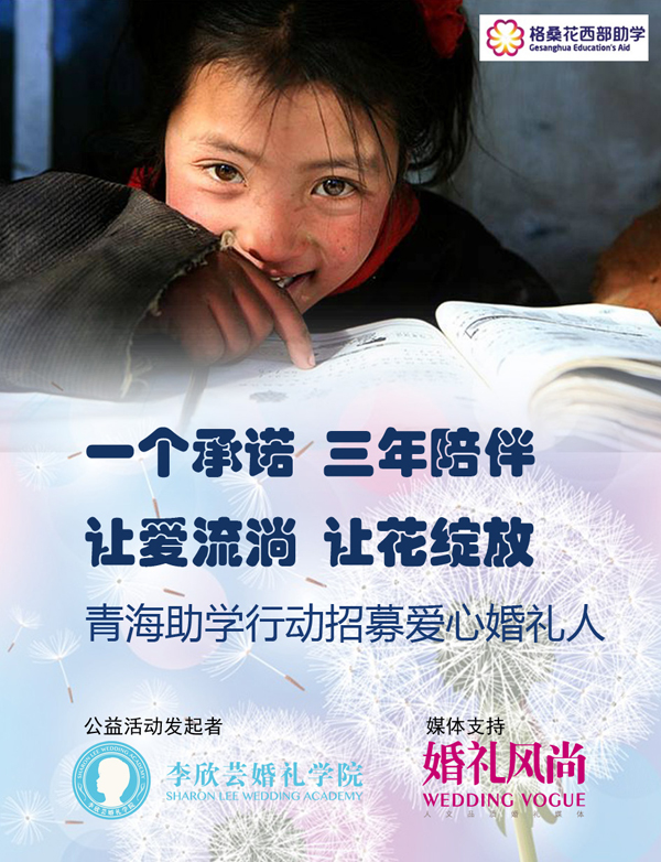 李欣芸婚礼学院和格桑花西部助学发起了一个爱心班,最终选择青海省国定贫困县湟中县田家寨中学,计划在开学初寻找50位婚礼人,和孩子们一对一结对,每年1575元(助学金1500元,基金会志愿者调查回访等工作经费75元)。