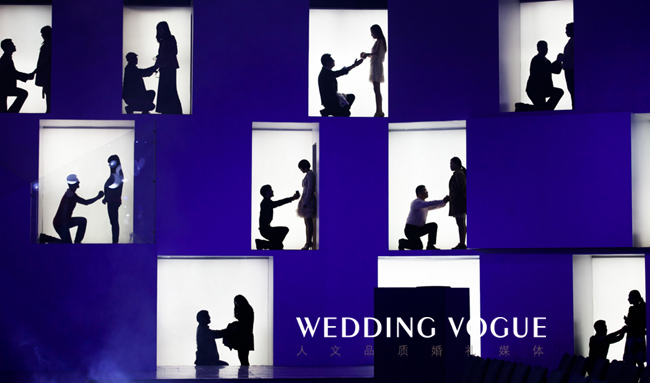 微电影之后,当33对新人出现在舞台上空特制的33个格子间时,台下嘉宾们响起一片欢呼,如此别致的出场,让人眼前一亮。在主持人的引导下,新人们四目相对,所有的男士单膝跪地,手捧鲜花向爱人许下一生的誓言,33对相拥的剪影勾勒出爱情最美最圣洁的一面。大屏幕上,随后播放了29日停机坪求婚的浪漫场面,让现场嘉宾们一同感受这份浓浓的幸福。