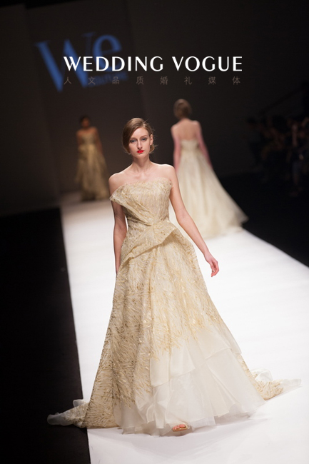 WE COUTURE2014秋冬高级定制系列,以婚纱礼服为载体,诠释了不一样的“暮色”主题,灵感来源于两位主创设计师的一次旅行,行走漫步于不同的国度,不同的日暮黄昏,颠覆了“夕阳无限好,只是近黄昏”的传统印象,同一片天空下,不同的地域文化,赋予了暮光不一样的具象美丽,山巅的落日余晖,海边的余晖袅袅,有金黄,有火红,在于黑夜交汇的瞬间爆发出强大的表现力。