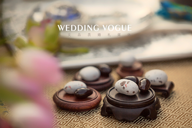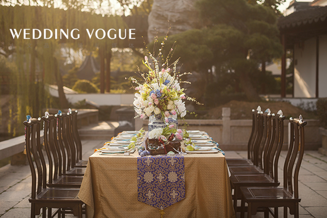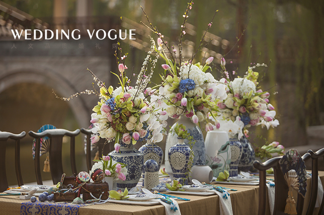 在静思园内进行拍摄是对传统婚纱片风格的一次突破,在园林内进行婚品布置创作,也是对户外婚礼布置的一次新尝试,结合园林的传统文化,此次由喜福堂倾力打造的桌品布置在每一个细节上与整体相互呼应,青花瓷花瓶、古典木质座椅、折扇、错落有致的各种花艺、很有爱的创意糖果,都从细节上诠释出中国古典文化的独特韵味。