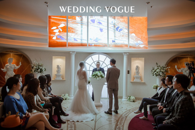 婚礼日,新娘vicky与新郎sean在进入vip通道的那一刻,神圣浪漫的教堂婚礼钟声敲响。