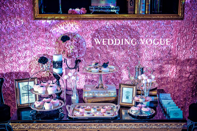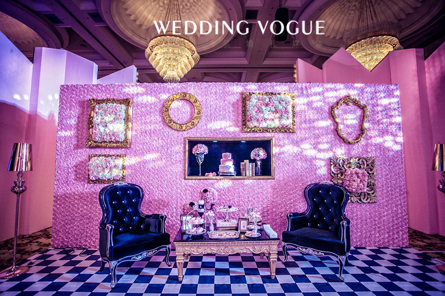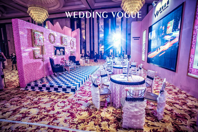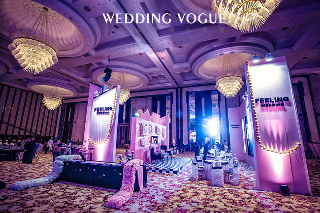 在婚礼秀展区的设计上,飞凌婚礼的设计师从时尚香奈儿的Chanel Chance Eau Tendre 中汲取了灵感,将粉色、金色、黑色有机地搭配,硬朗中不失甜美,犹如对爱情的执着坚守和美好憧憬,而后又不禁流露出腼腆的笑容,温柔、甜美、幸福洋溢.