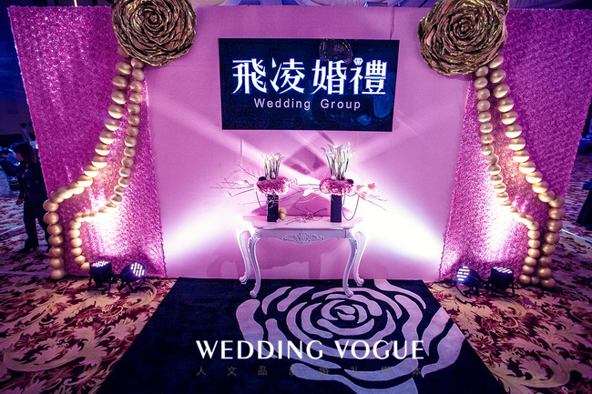 粉色花朵如缎带般轻盈滑过女孩的身体,如同美丽的新娘,等待着属于她的真爱命运翩然降临。金色与黑色的点缀,如同爱情的热情和眩目就此展开。飞凌婚礼希望通过甜蜜清新而不失奢华诗意的设计将每一位有着公主梦的准新娘带入对美好婚礼的想象,并让他们真切感受到粉红甜蜜的现场氛围。