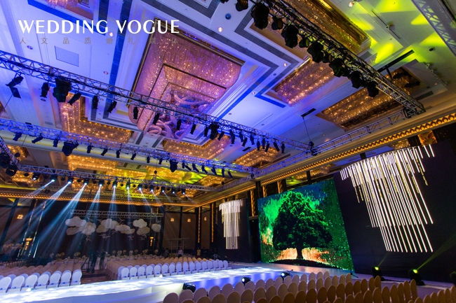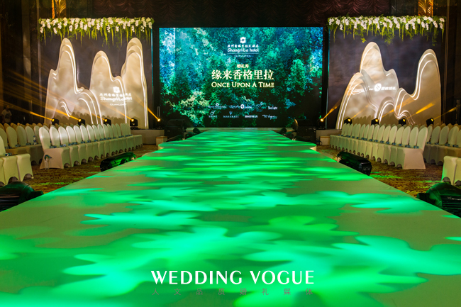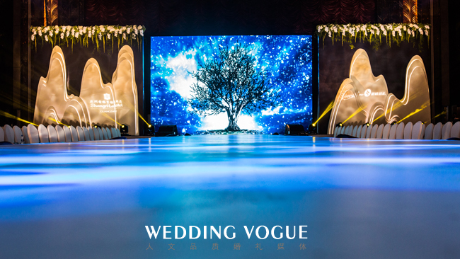 在一个多小时的交流和下午茶后,一场精彩的灯光秀正式拉开了婚礼秀帷幕,来自国内知名灯光师Y先生用独具魅力的灯光语言将现场营造成一个梦幻的世界;作为此场婚礼秀的重头戏,舞台剧+微电影的新型内容呈现,将影像和舞台真人秀完美结合,讲述了一位婚礼策划师与婚礼管家时空交错的爱恋故事,现场以优美的舞蹈与音乐为背景,男女主人公双双出现在香格里拉的婚礼秀舞台,新娘披上婚纱,完成了人生中重要时刻,最终与心中的那个他进入了婚姻的殿堂。从而也呼应了“缘来香格里拉”的婚礼秀主题。