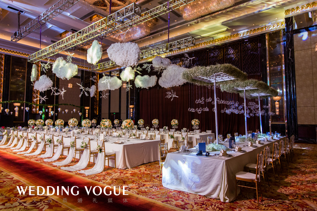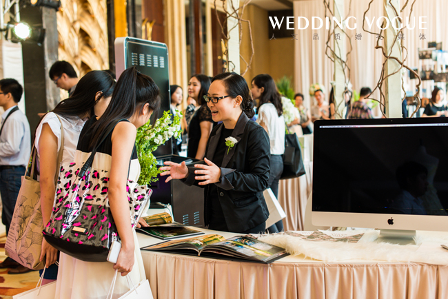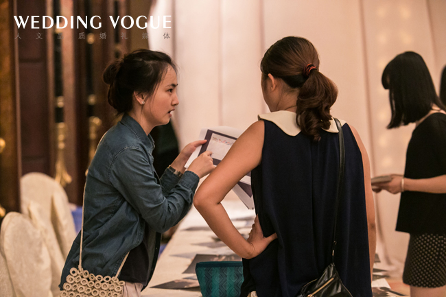 与其说这是一场婚礼秀,不如说它是一次全方位的婚礼盛宴。此次银禧婚礼联合汤池印象、YourLight婚礼灯光设计、主持人陈纯、菲宁视觉、SHINE MODA高级婚纱定制、铂扉perfect frame等国内一线婚礼团队,为现场来宾带来更加专业的婚礼呈现。为此,活动专门开设了影像、婚宴设计、婚纱、甜品等不同领域的专业咨询和展区。在宴会厅两侧,银禧婚礼精心布置了几套色彩浓郁、风格各异的中式圆桌和清新淡雅、美轮美奂的西式长桌设计,为现场的准新人们提供更多婚宴的设计灵感。