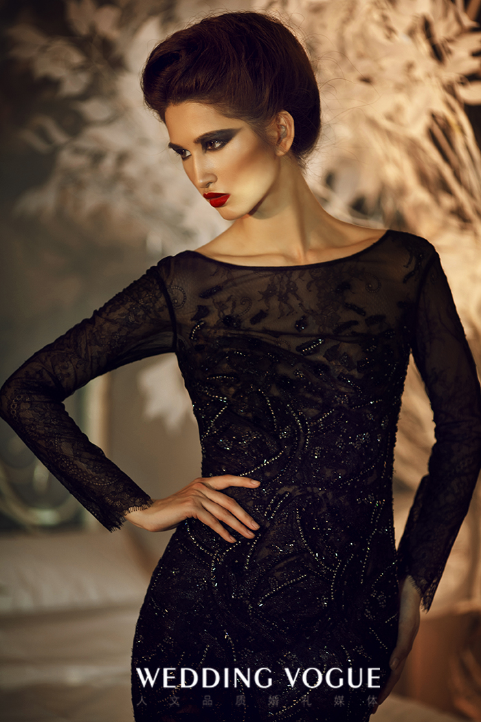 造型上,也进行了一次大跨度的尝试,三套完全不同风格的妆容搭配WE COUTURE 高级定制婚纱礼服,呈现出三种不同的气质与魅力。轻盈的白纱搭配清透自然的裸妆和慵懒蓬松的长发犹如刚睡醒的少女,唯美动人。黑色礼服搭配大烟熏和复古红唇,又呈现出高贵冷艳的一面。蕾丝拼接的简约礼服,用面粉做的妆发处理让人眼前一亮,犹如从梦境中走出的天使。