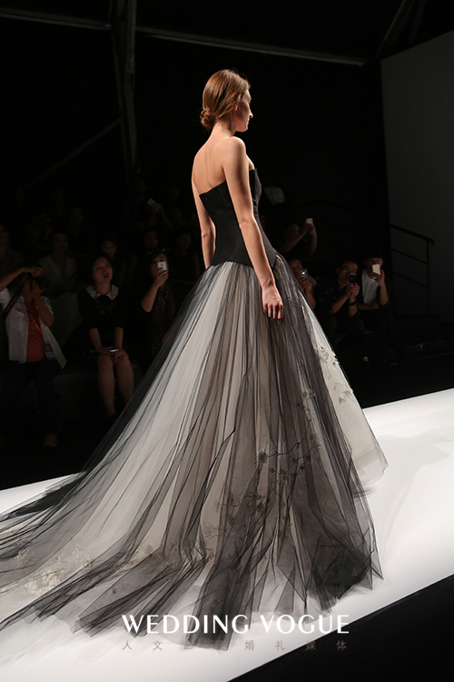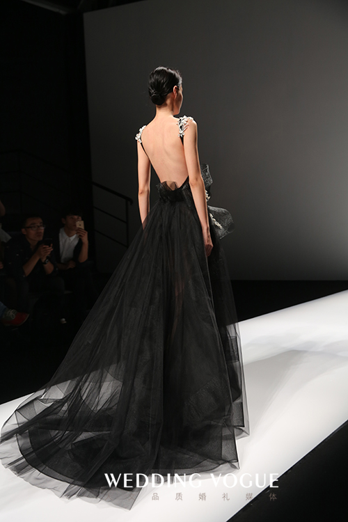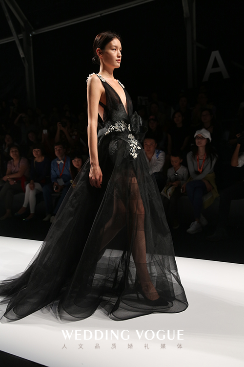 设计师没有将东方元素直接拼凑,而是通过传统的红、圣洁的白、优雅的蓝、神秘的黑结合一些精致的廓形,或唯美,或简洁去凸显东方女性的雅致韵味。通过不同颜色、面料之间的层叠交错进行虚实对比,以烘染皴擦作明暗凹凸,质感、体积、透视、层次等效果因明暗的层次而显露。
