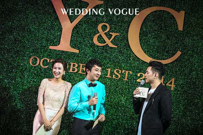 最后,新郎袁成杰说:“在梦里梦了一千次结婚的场面,也不知道结婚那天我到底会说什么。我太太陈芊芊是一个特别棒的女孩,但她也会经常抱怨我说‘袁成杰你是个双鱼座,双鱼座的人应该很浪漫,但是为什么你每次都像理科生,一点都不浪漫,’所以我今天斗胆,按照自己的方式,做了一点小浪漫,瞒着你,想在现场的所有来宾面前送给你,不知道喜不喜欢.....”在爱情面前,开放的大男孩也开始变得腼腆和紧张,面对着梦过一千次的场景,默念一万次的对白,此刻还是会有些许羞涩。
