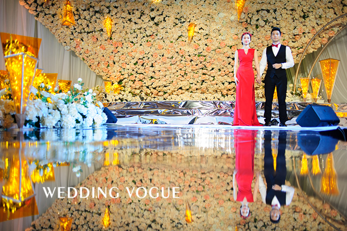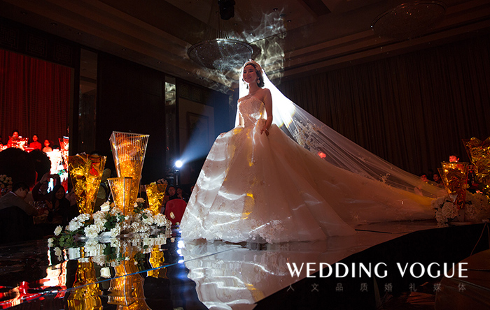 可可:因为之前在国外念书,就比较喜欢西式婚礼的氛围。其实一开始是想找北京的婚庆公司,因为我之前在北京工作,资源相对较多。后来婆婆和老公提出一个很现实的对接问题,还有习俗的差异,我就开始关注温州本地的婚庆公司。看了很多比较了很多,很喜欢欧城礼仪赖教授的设计风格,他也是从英国回来的,感觉会很有共同话题,会很容易抓住我想要的点和喜欢的感觉。王瑱老师和赖教授之前有合作过婚嫁秀,我之前亲自去现场看过一次,很喜欢王老师的声音和主持风格,台词很有内容,低调有内涵。