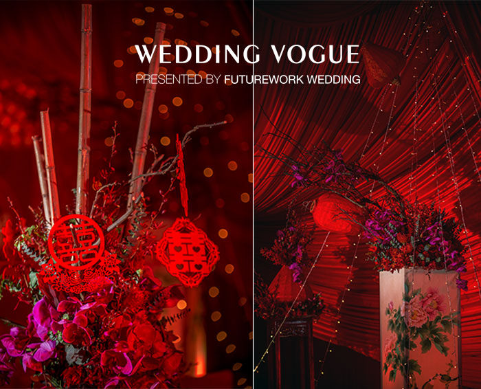 “喜庆”大概是中国婚礼重要的元素,因此,上虞的这场婚礼,Futurework完全采用传统的中国红,并用新中式的风格去展现。其中,灯笼,剪纸,窗花等等都成为婚礼中的重要元素。不同的是,这场婚礼打破了中规中矩的传统中式,增加了很多随性感。其中,主桌花用了原色竹子和红色花艺搭配,在隆重的氛围中又蕴含了丝丝自然的清新味道。