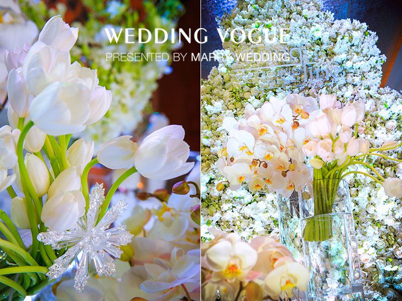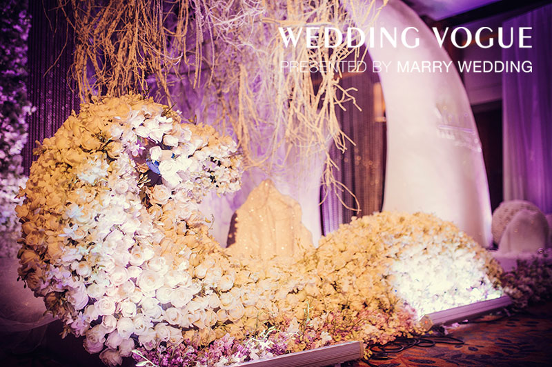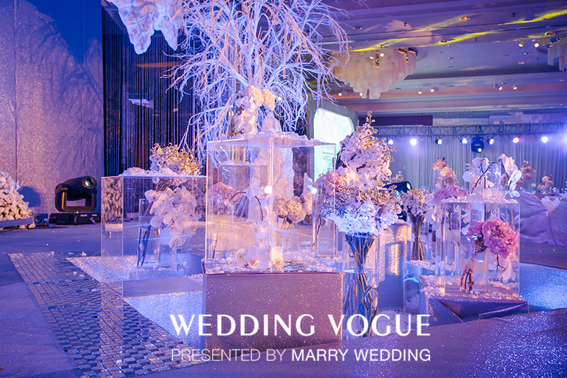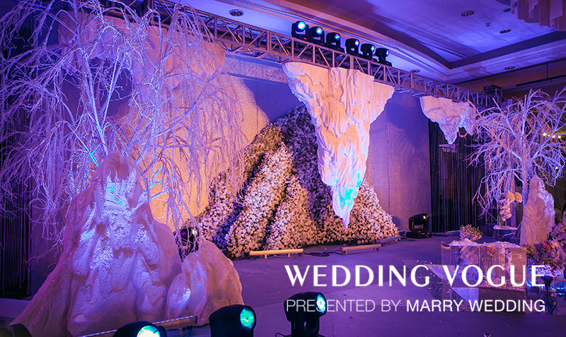 主舞台也是半月牙船帆的形状,为新人记录最初的感动与美好。大面积的冰雪元素让整个宴会厅的氛围格外宁静舒适,配合镁红灯的渲染,你能感受到花开得如此娇艳动人,每颗水晶都折射出不一样的光彩,如同新人之间的感情,纯洁·透明。 同雪,每一颗都有不同的样子,每一天,爱情都有不同的故事。