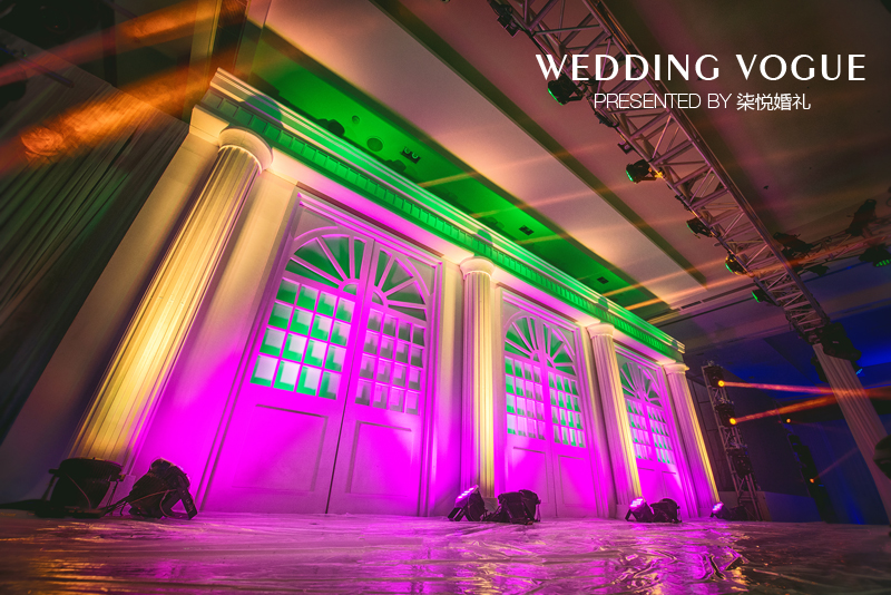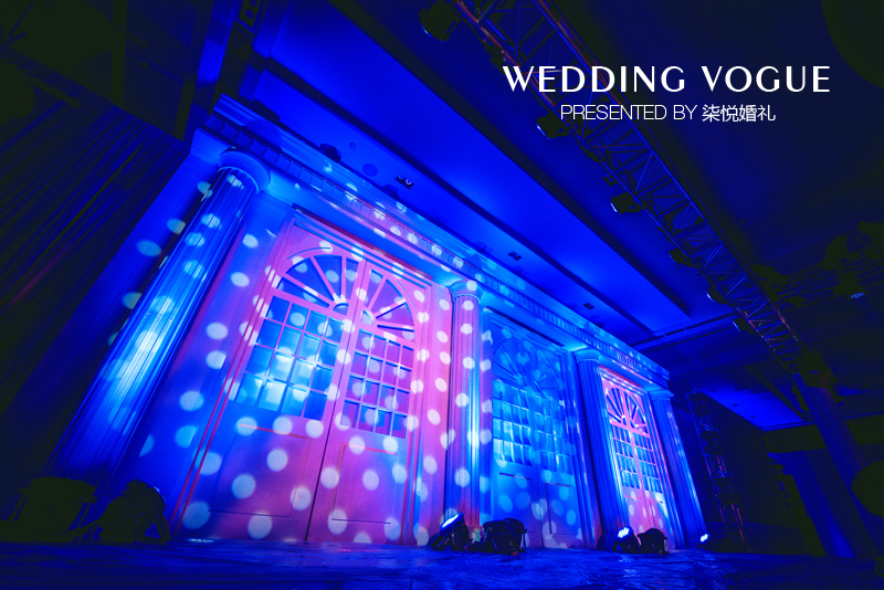 随着德国作曲家约翰·帕赫贝尔最著名的那首《卡农》轻柔的响起,漆黑一片的大厅便一盏一盏的亮起五颜六色的灯来,随后,神秘而梦幻的幸福之门被点亮,舞台被照亮,精心设计的餐桌被照亮,霓虹开始闪烁,随着音符的调动,光也开始活泼起来,变幻出五颜六色的绚丽色彩,现场所有的来宾都被带入了美丽的梦境。