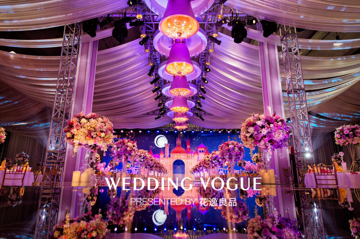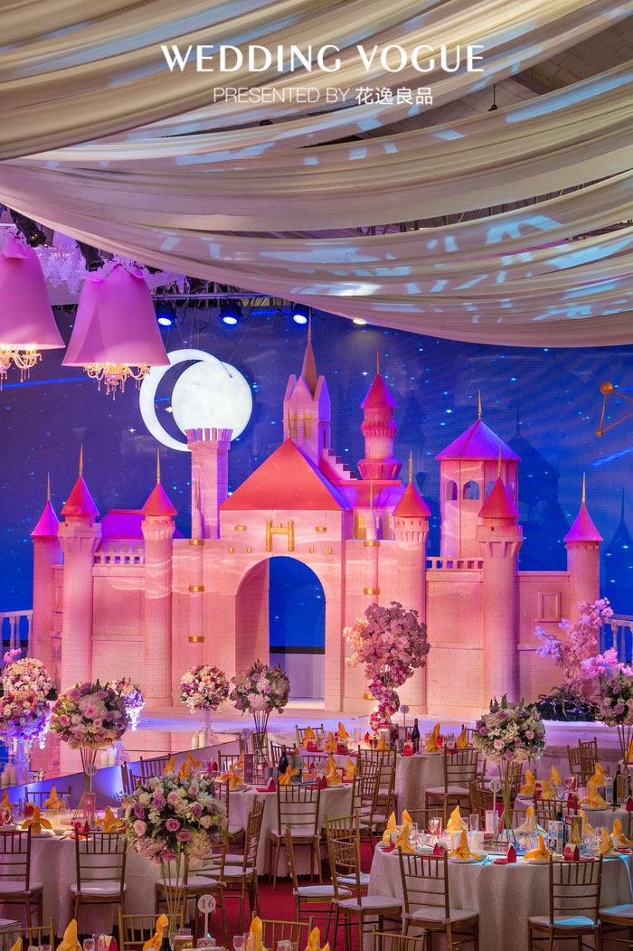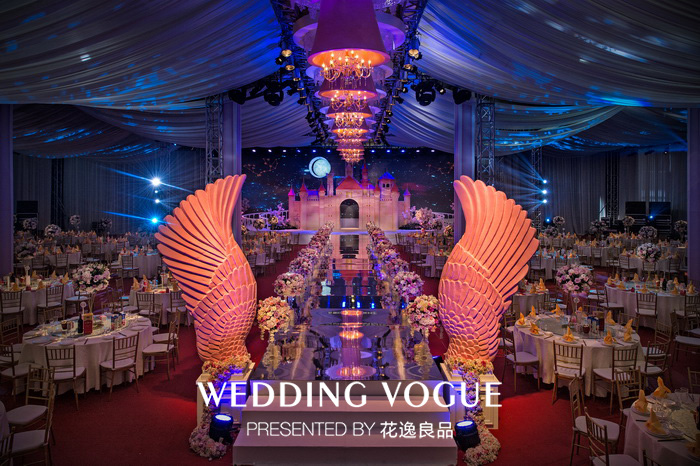 童话故事曾讲过,当钟声敲响12下的时候,白马王子就会来迎接他心爱的公主,然后一起幸福的生活在城堡里。而花逸良品想要呈现的不光是甜蜜的童话梦境,亦还有新人对美好未来的真实期盼。在这场名为《真爱无坦途》的主题婚礼中,花逸良品以星空与城堡为背景构架了主舞台,在布置上,加入了象征甜美柔和的粉色铃铛,天使翅膀等元素。按照新娘的设想,设计出了一场深感梦幻,干净的王子与公主的婚礼,一如新人间透亮纯粹的爱情故事。“因为有我们的真实情感,和花逸良品团队对这场婚礼的用心良苦,还融入了我想要的城堡婚礼主题,在婚礼上既得到了双方父母的认可,也还有亲朋好友的祝福。所以对我而言,这是一场完美的婚礼,让我没有遗憾。”