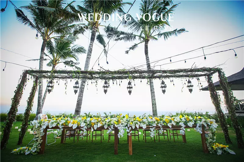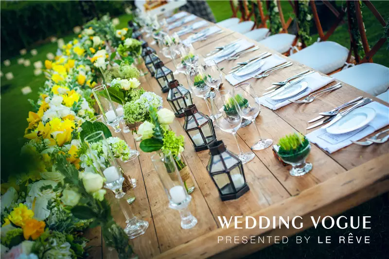 这场婚礼的主色调是白,绿,黄。这些色彩代表着最简单最纯粹的自然之美,让户外美好的景致最大限度地为婚礼增色。代表自然的色彩,少了人工雕琢的痕迹,多了大自然的力量与馈赠。
