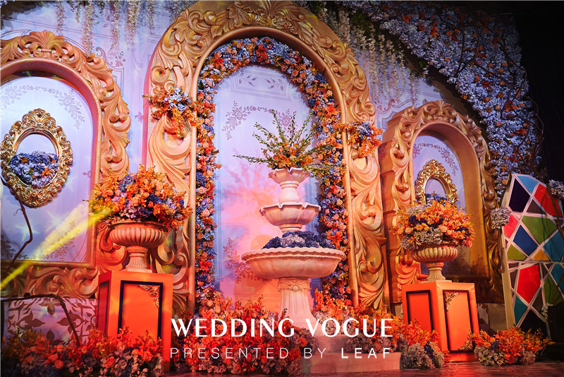 此次婚礼的舞台设计,总是不断的给我们带来惊喜,先是裸眼3D的现代科技,让嘉宾大开眼界。紧接着是星空幕的星光璀璨又浪漫,揭开星空幕的神秘面纱,重欧风格的欧式宫廷背景让人眼前一亮。不同的场景变换使得此次婚礼成为一场视觉盛宴。对于LEAF麗芙婚禮来说,这样的舞台设计也是第一次尝试,多种设计结构之间的关系复杂又冒险。