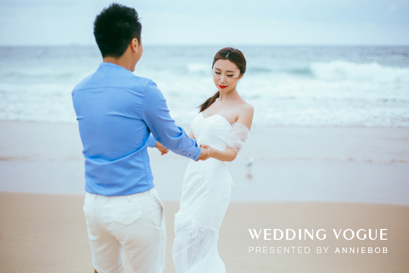 3. 关于服装:由于旅行拍摄的特殊性,我们通常对当地的环境未必百分之百的掌握,在拍摄时间相对紧凑的情况下建议新人准备3件左右礼服为宜,这样既可以减少行李负担又可以在有限的时间内将每套衣服都拍得精彩。同时,礼服的质地最好避免选择纤薄的、纯蕾丝或真丝等易损毁的材料,这样可以避免在拍摄中因有所顾虑而无法很好发挥情绪。便装可多配搭几套随时调换进行拍摄,同时新人双方衣服的款式颜色要进行适当搭配,各种各样的配饰如果方便也可多带些,比如眼镜、帽子、领结、丝巾、拍立得相机等等,这样拍摄的元素可以更多更有趣。