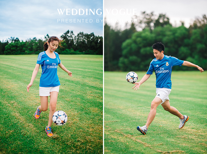 Star是资深球迷,来自大连的他不但喜欢看球更喜欢踢球和收藏,在他的熏陶下CC也对足球运动十分喜爱。在交谈过程中CC和Star曾表示,比起婚纱和西装他们更喜欢自然随性的状态下拍摄照片。