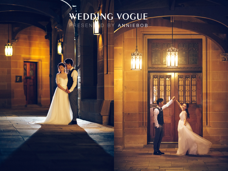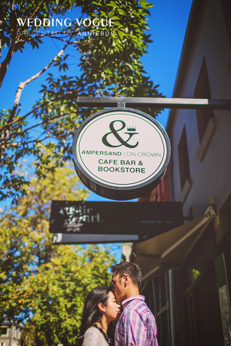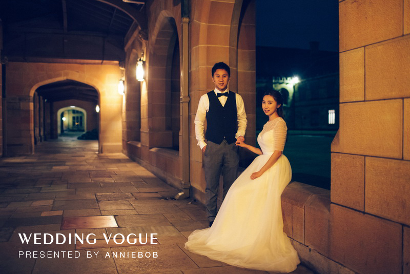 结束了卧龙岗拍摄,我们又回到了悉尼市中心。在这次拍摄中,由于新人都在澳洲求学中,校园也就成为我们拍摄选址的一个重要地点。在详聊中CC介绍说,原本她和Star高中时相恋然后为了上大学而各奔东西。CC去了美国,而Star则来到了澳洲。在这过程中他们一直保持着远距离的恋爱直到CC大学毕业。为了追随自己的心上人她又不远万里来到澳洲继续读研深造。她开玩笑的说:“我可是为了这个家伙放弃了在美国发展的大好机会哟。”嘴上虽然这么说,但是她眼里满是幸福的笑意让我们感受到她一定觉得这样的选择是值得的。每周都要开车送CC来上课的Star也建议一定要在悉尼大学拍摄。它不但美丽,同时也是他们执着相恋的见证。