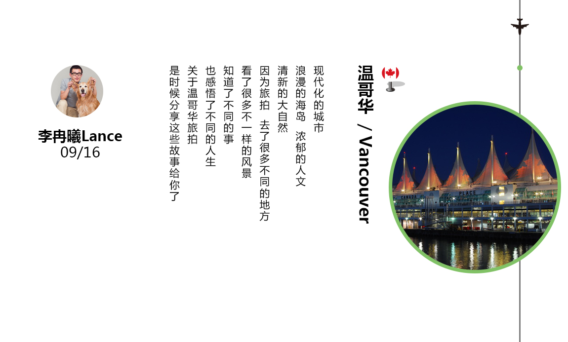 9月16日, 《环球旅拍详尽攻略 | 温哥华》 正式发布,摄影师:李冉曦Lance