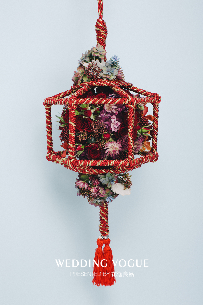 花逸良品创作出一个以红色为主的手拎花,灵感来自中国的灯笼,花逸良品将灯笼的骨架改成了六边形,以红色玫瑰为主要花材,红色对于中国人来说是代表喜庆和吉利的颜色,红色玫瑰更像一道热情的焰火,灼灼人心。