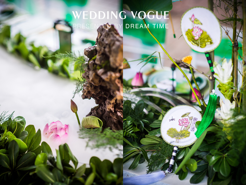 本次长桌桌花设计的主题为西子·觅,西子---顾名思义寓意西子湖,觅---也就是寻觅,意在西子湖畔断桥上寻觅至真至爱。固有“欲求前情何处在,西湖高处断桥横”,而梦时光也正是用这样一句词来贯穿中心,作为创意思路,一花一草一枝一木都在一池清水的衬托下成为了西湖的缩影。